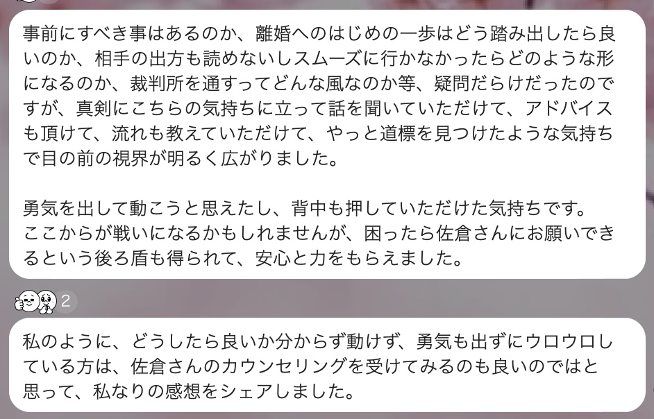 LINEやオープンチャットより、たくさんのご感想をいただいております。